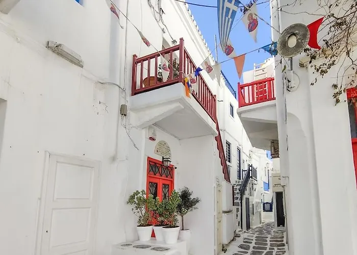 Dit vakantiehuis is in het centrum van Mykonos Town, een paar momenten van de Windmolens van Kato Mili gesitueerd. Deze 2-badkamer villa bevindt zich op 2 km van natuurlijke bezienswaardigheden zoals het Agios Stefanos-strand. Een van de andere bezienswaardigheden in de buurt is Windmolens van Mykonos, binnen 6 minuten wandelen hiervandaan.
